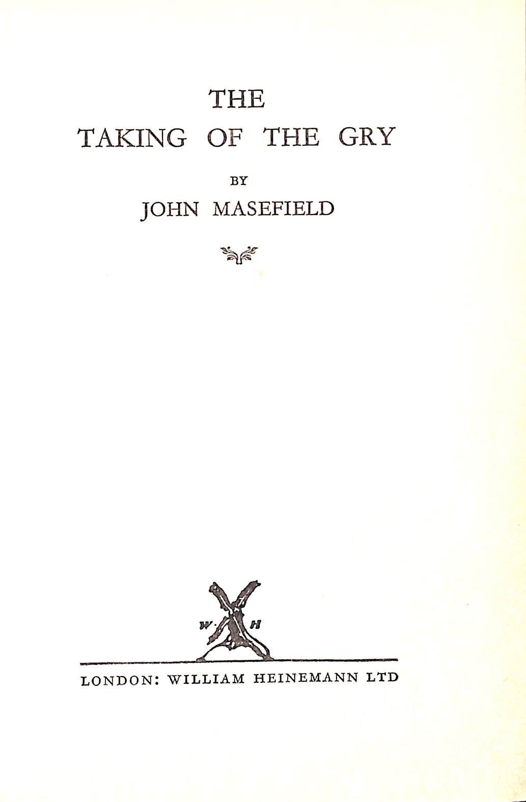The Taking of the Gry is a novel by John Masefield published in 1934, and set in the fictional Central or South American state of Santa Barbara, also the setting for Sard Harker (1924), ODTAA (1926), and part of The Midnight Folk (1927). The action of the novel takes place in 1911, some time after Don Manuel, the benevolent dictator in Sard Harker, has died.